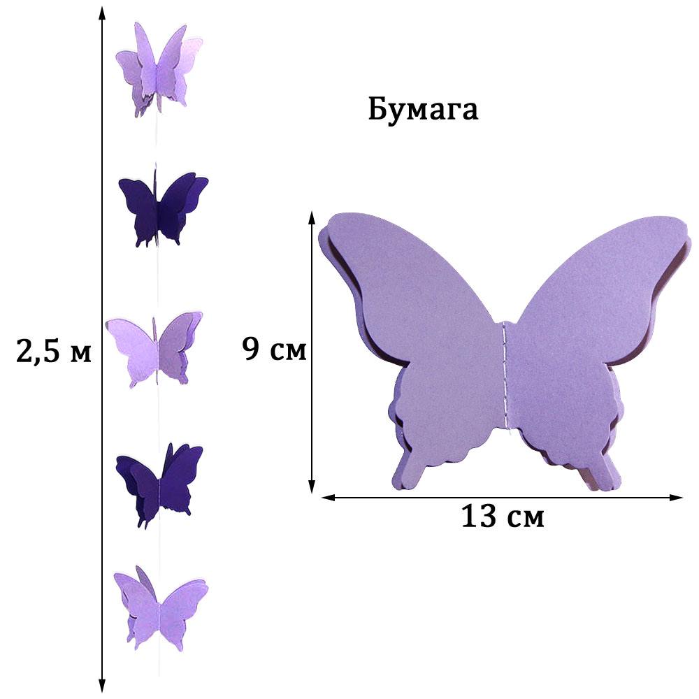 Гирлянда "Бабочки" 13х9см 2,5м, сиреневый+св.сиреневый
