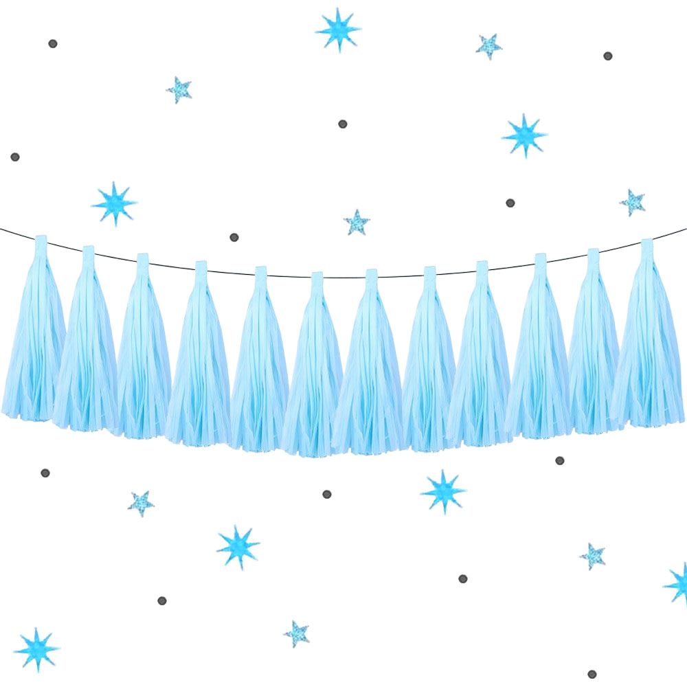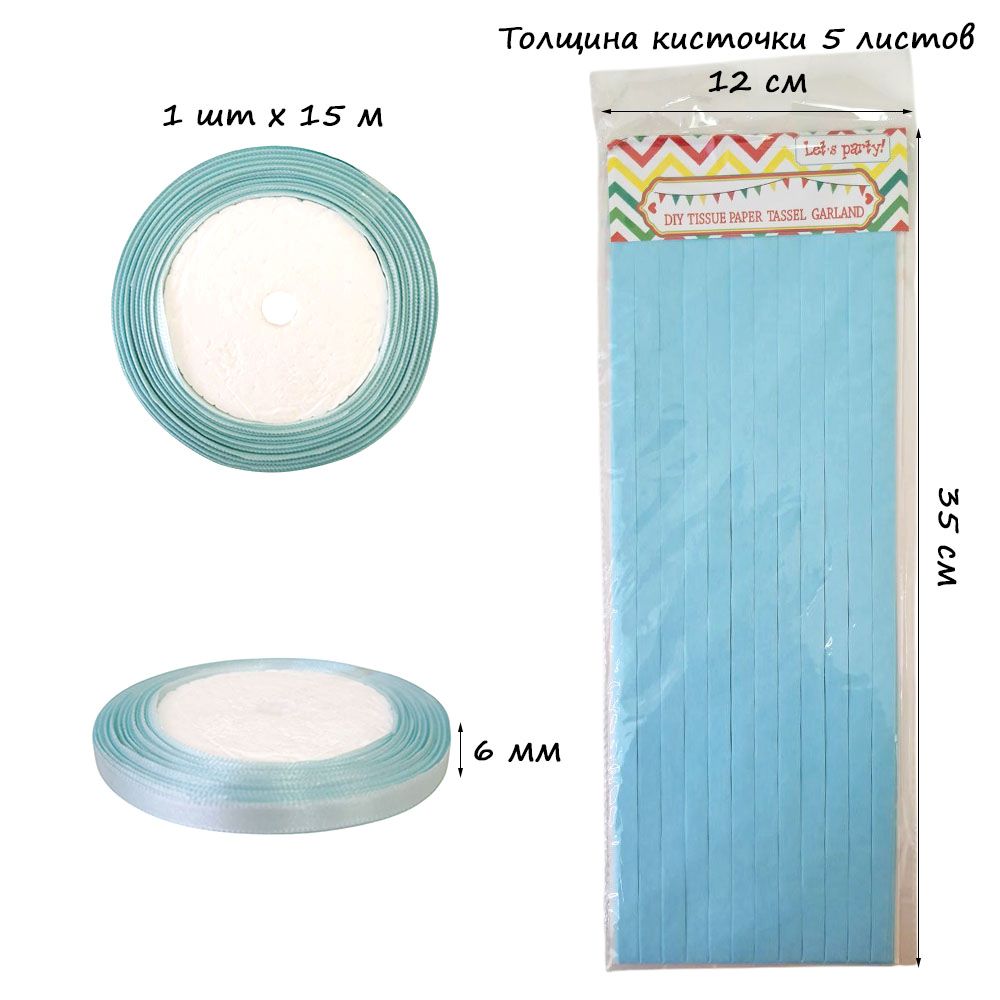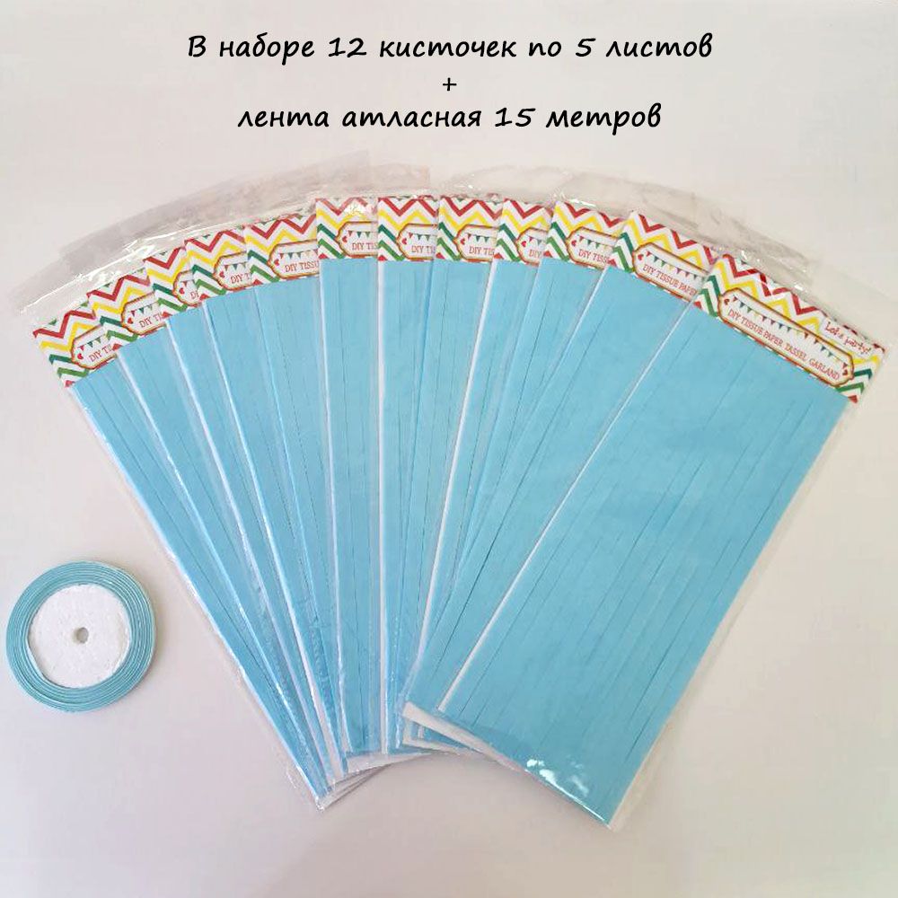 Гирлянда тассел 12 кисточек по 5 листов, голубой