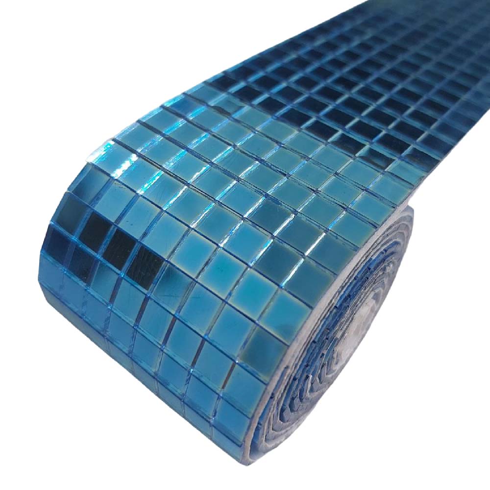 Лента самоклеящаяся зеркальная мозаика стекло, 4см х 1м 5х5мм, синий