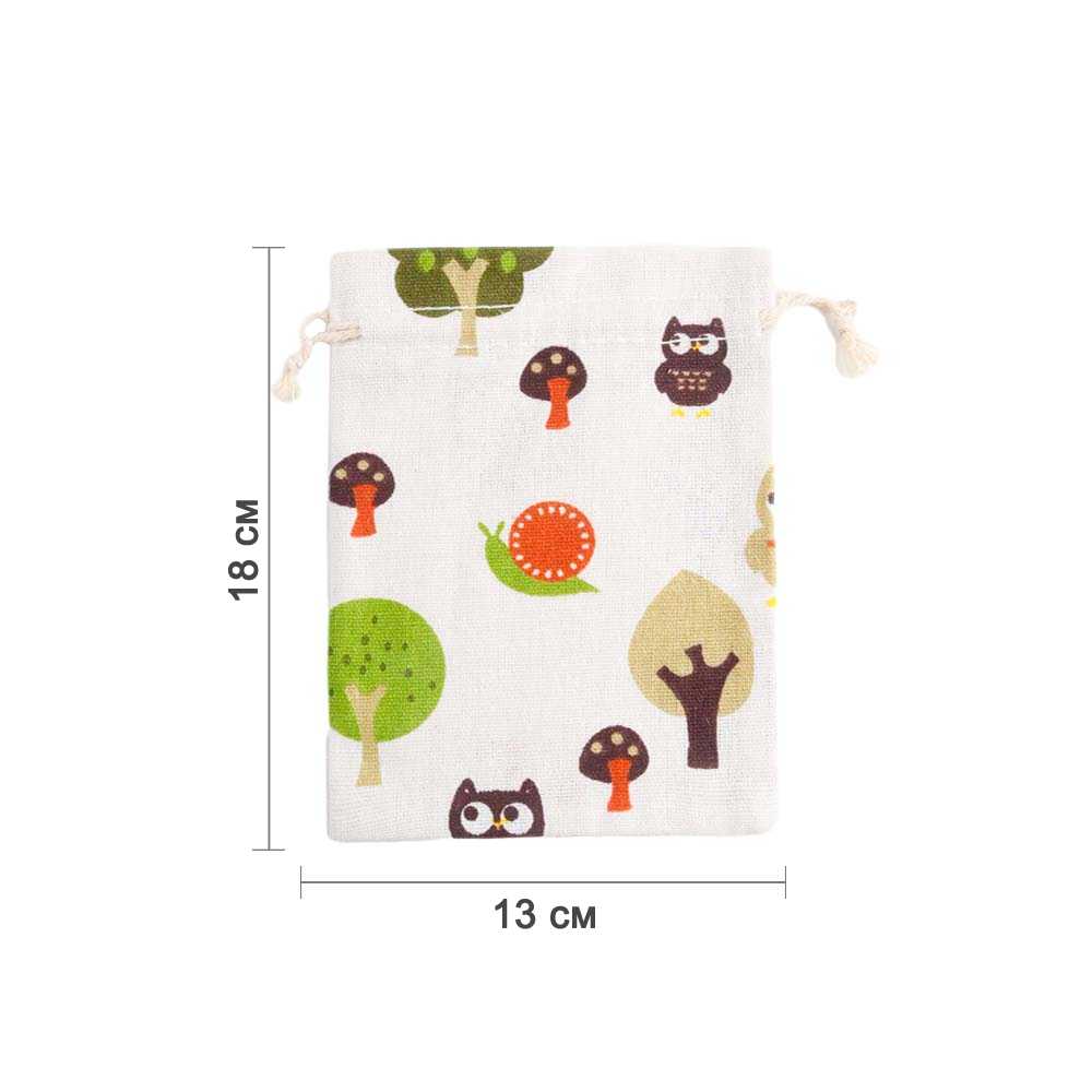 Мешочек из искусственного льна с принтом 13х18 см, №3