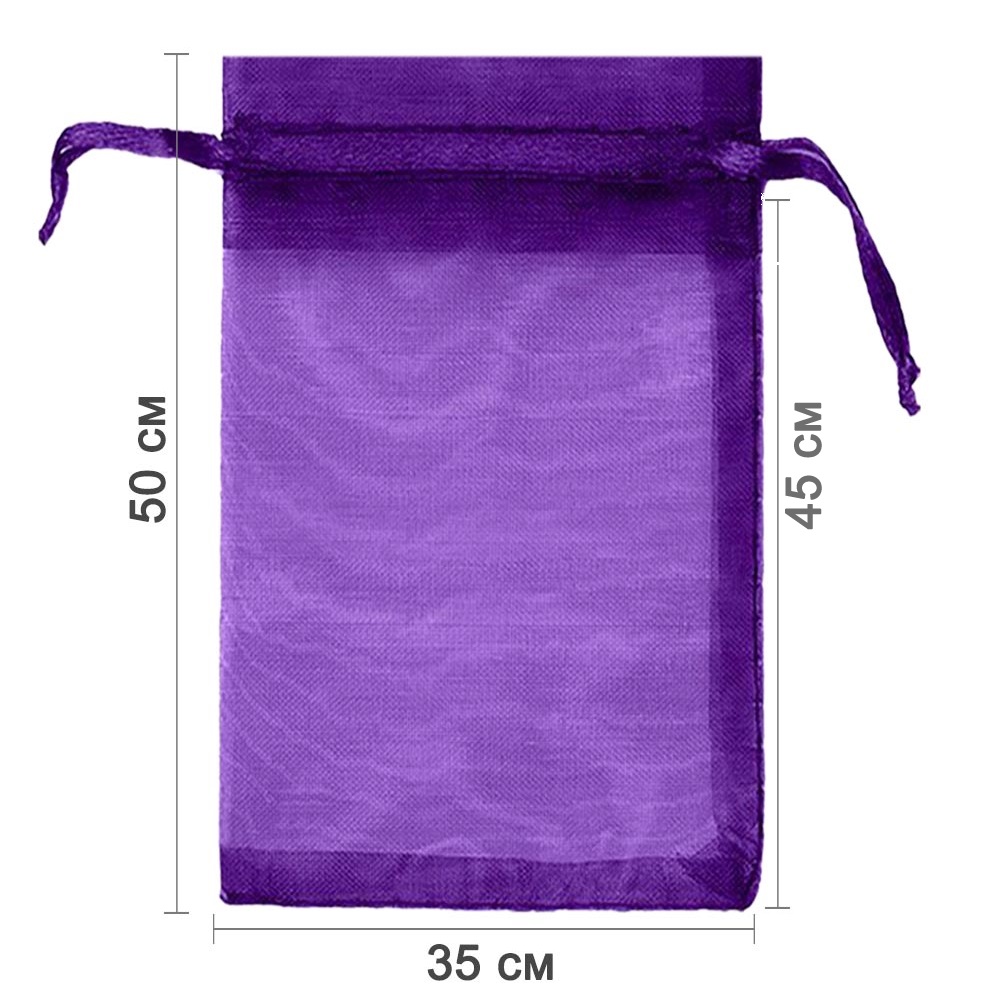 Мешочек из органзы 35 х 50 см — стильная и удобная упаковка для крупных подарков и хранения больших предметов. Лёгкая ткань подчёркивает содержимое и создаёт праздничный вид.