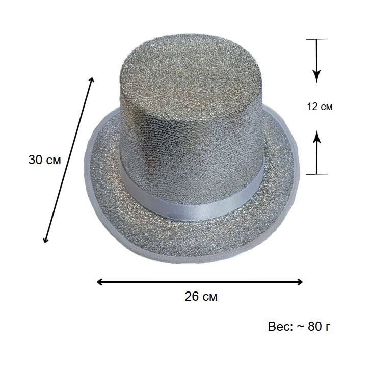 Шляпа Цилиндр с блеском, серебро