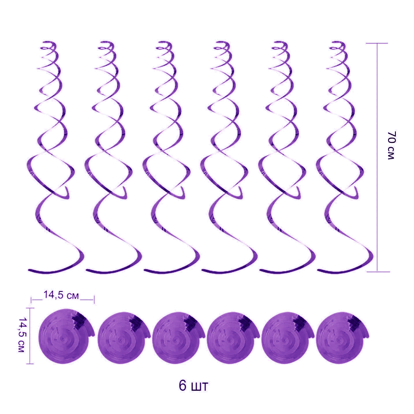 Спираль пластиковая 70см 6шт, фиолетовый