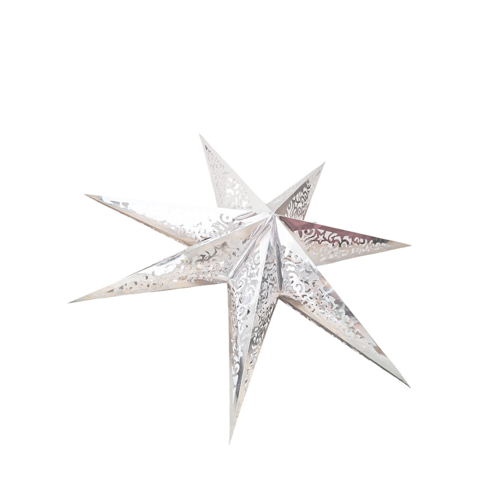 Семиконечная объемная звезда 60 см — великолепный декор из тонкого перфорированного картона. Создает красивые световые эффекты. Поставляется в сложенном виде, в комплекте шнур для фиксации объема и подвеса.